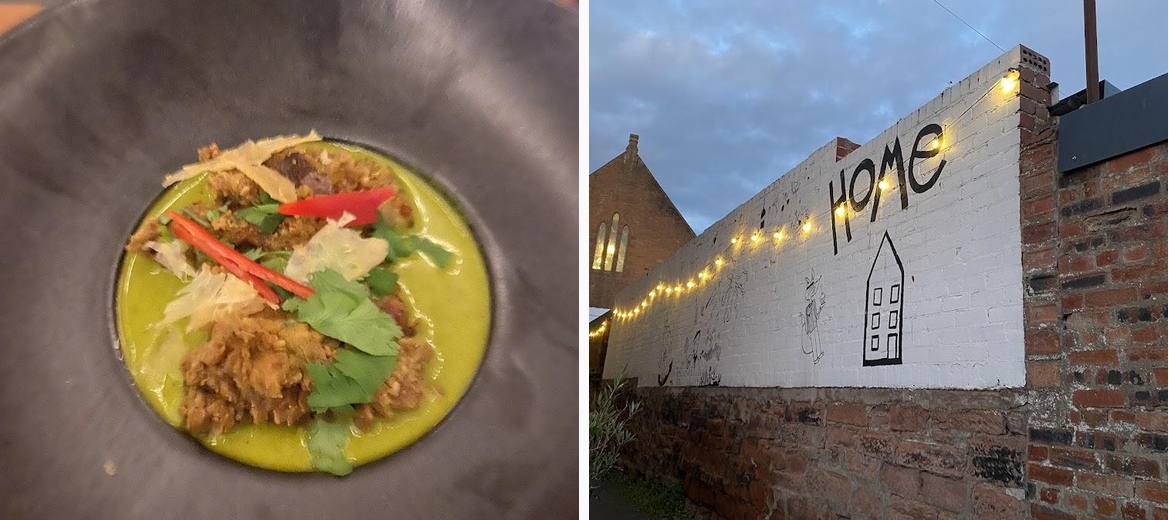 LOVED our dinner at Home. The service was friendly, welcoming and unpretentious. It was like arriving at a friends house where they poured a large glass of wine and put delicious bread and olives on the table. Felt at home from the start. I had the cucumber avant guard which was hard to describe even after eating it - but the flavours were amazing. The green curry fried chicken was outstanding - So much flavour. For mains we had pig cheeks which were delicious and the rump steak. The steak was unbelievable! It was melt in the mouth and cooked to perfection. It was also one of the largest steaks have ever been served and took 2 of us to eat. Should really have taken a doggy bag as would a have made amazing sandwiches next day. Didn’t really have room for pudding but wanted to try the plum tart which was so delicious. Wine was very reasonably priced for the quality and comes by glass . Will be finding reasons to be in Dumfries on Thursday or Friday again so can return